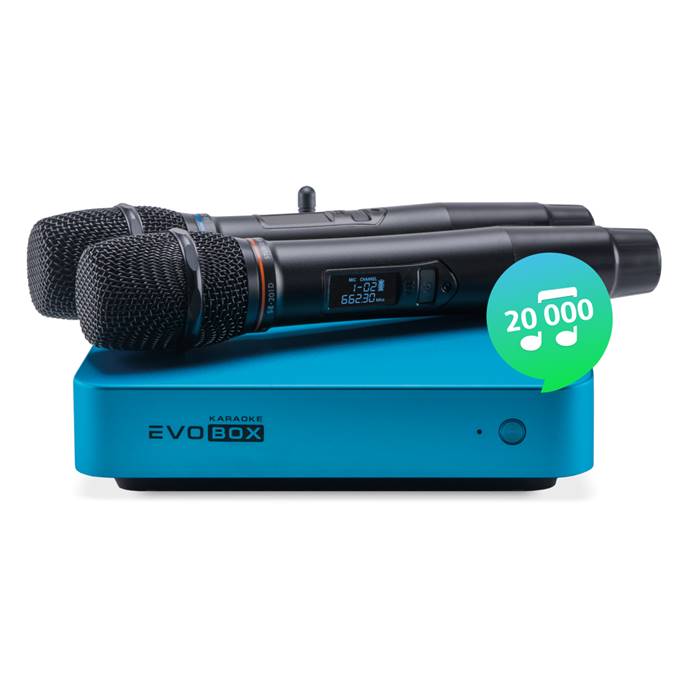 В целом система является продвинутой версией модели Classic: тут также имеется пара беспроводных аккумуляторных микрофонов, дополнительные микрофонные входы и все фишки и плюшки линейки EVOBOX. Ключевая разница - снова в базе фонограмм, наличии клипов и, на этот раз, в комплектации системы.