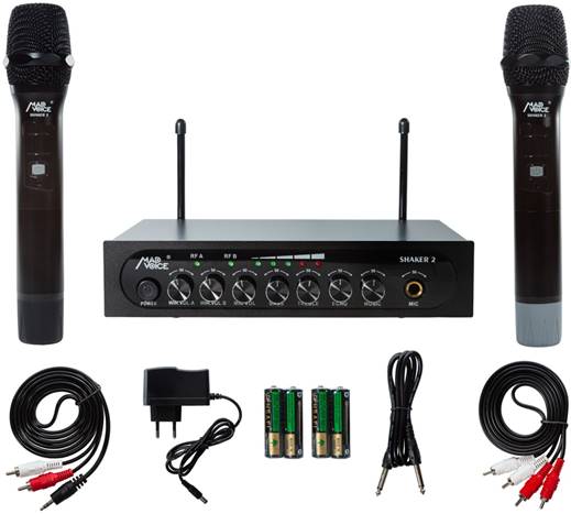 MadVoice Shaker 2 - небольшое, компактное устройство, снабженное парой беспроводных микрофонов, которое позволяет превратить ваш домашний кинотеатр / стереосистему / музыкальный центр в караоке достаточно высокого качества.
