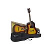 Комплект акустическая гитара и аксессуары Dean AX PDY GN PK. Включает в себя стандартный чехол, тюнер, гитарный ремень и гитару.