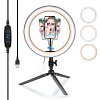 DEKKO F-265 - Настольная кольцевая селфи лампа для фотографов 26 см с 3 держателями телефонов на стойке с регулировкой высоты. Устойчивое круглое металлическое основание на стол с антискользящей поверхностью.