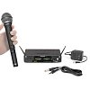 Беспроводная вокальная радиосистема с двумя ручными микрофонами, обеспечивающая работу на расстоянии до 100 метров, питания от элементов типа AA.
