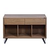 от 6 049 ₽/мес Стеллаж для виниловых пластинок Radiotehnika Rondo 302 Walnut - Предусмотрено три открытых секции для хранения виниловой коллекции и два выдвижных ящика для аксессуаров.